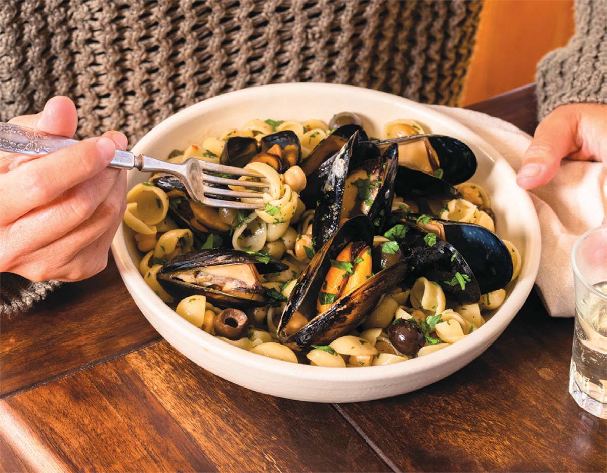 Orecchiette con Cozze Penn Cove Cecie e Capperi